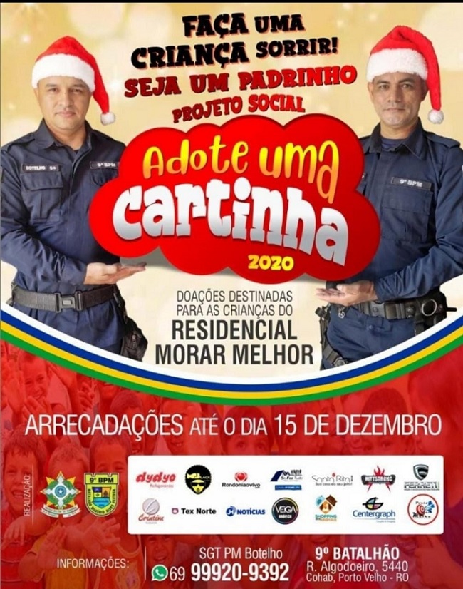 O PM pede a população para adotar uma cartinha com o objetivo de ajudar no Natal das Crianças do residencial, que fica na zona Sul