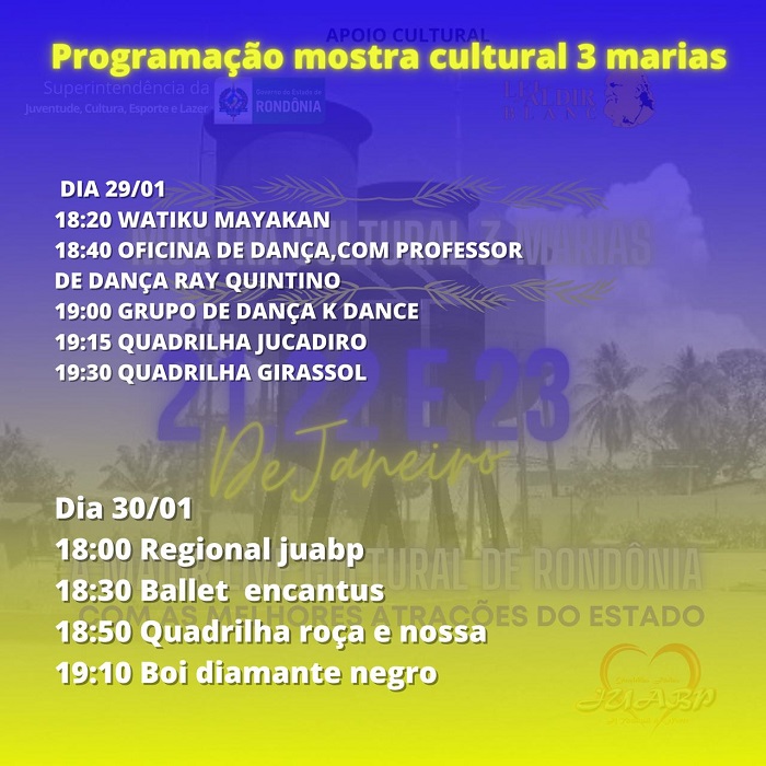 Para os amantes de quadrilhas e bois-bumbás, este final de semana tem programação on-line, na live Três Marias, promovido pelo grupo folclórico Juabp. O projeto foi um dos contemplados pelos editais lançados pela Sejucel, com recursos da Lei Aldir Blanc de apoio à cultura. Veja a programação no final da maatéria.