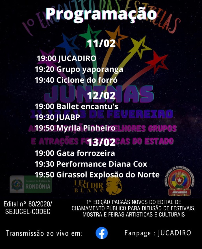 Neste sexta,12/2, e sábado,13/2, tem o São João das Estrelas, promovido pela Juabp. O evento iniciou na quinta-feira,11. A programação começa às 19 horas.