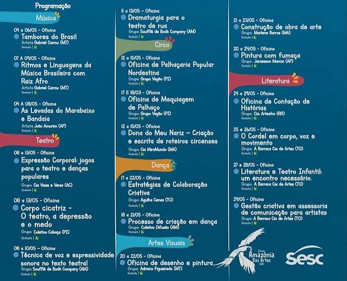 Estão sendo oferecidas 19 oficinas em diversas áreas