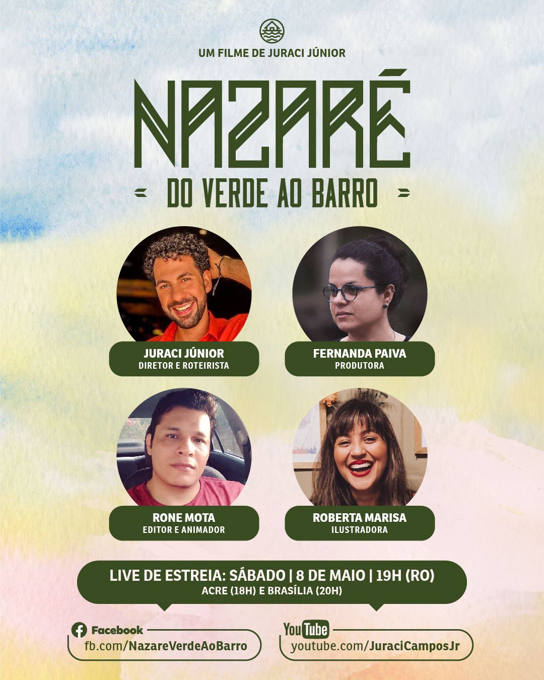 O curta de animação Nazaré: do Verde ao Barro conta de forma poética a história de uma família que embarca numa viagem em busca de uma nova vida. Em Nazaré, distrito do baixo Madeira, em Porto Velho, constroem uma relação de afeto, respeito e amor com aquele ambiente, sobretudo com o rio que banha a comunidade e que marca diversas fases de suas vidas, seguindo o movimento das águas. A estreia acontece neste sábado (8), com oficina gratuita de ilustração e exibição do filme pelo YouTube, seguida de bate-papo com a equipe de produção.