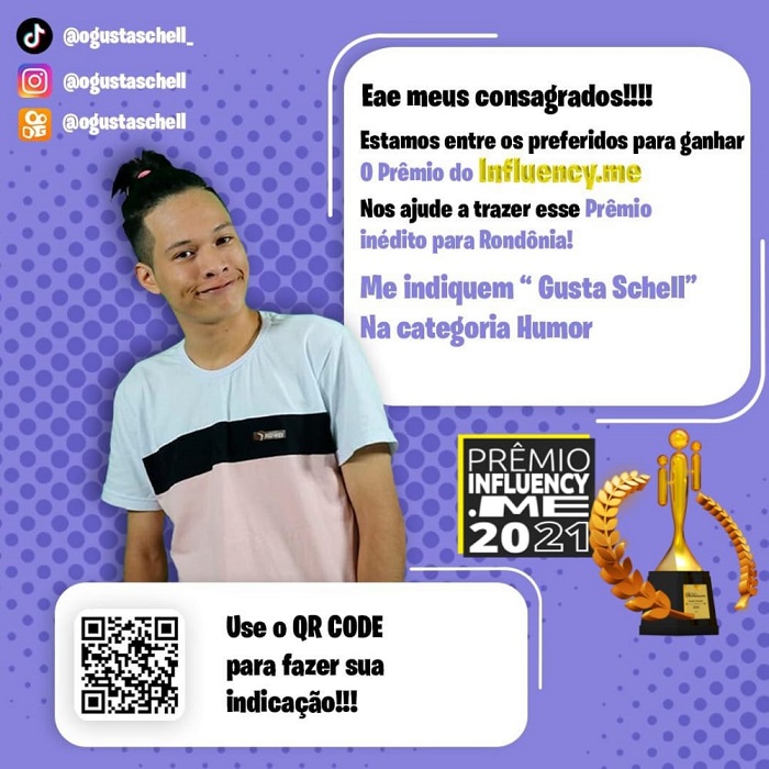 Com mais de 140 mil seguidores no TikTok, e acumulando mais 17 milhões de visualizações em seus vídeos de comedia, o canal do comediante porto-velhense Gusta Schell, de 20 anos, já é um dos maiores da região norte no segmento de humor.