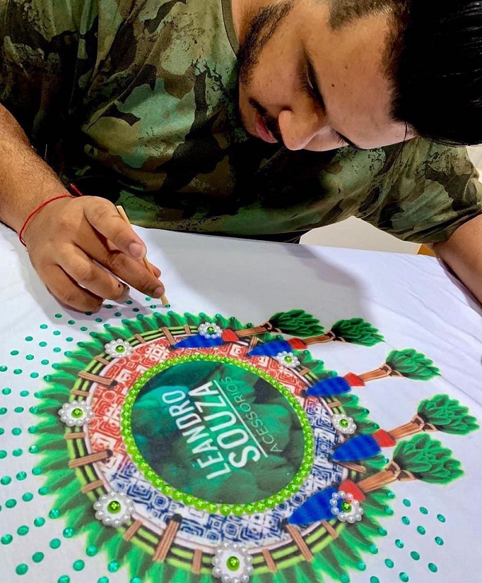 O artista rondoniense Leandro Souza, 24, é um dos nomes escolhidos para compor o time de profissionais responsáveis pelas indumentárias dos itens individuais do Boi Caprichoso para a Live Parintins, evento que ocorrerá dia 26 de junho para celebrar o Festival Folclórico de Parintins, adiado mais uma vez por conta da pandemia da Covid-19.