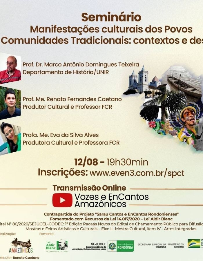 Seminário temático, virtual, acerca da necessidade da valorização, reprodução e divulgação das manifestações culturais dos povos e comunidades tradicionais enquanto direito constitucional acontece nesta quarta-feira,12, às 19h30, no formato online.