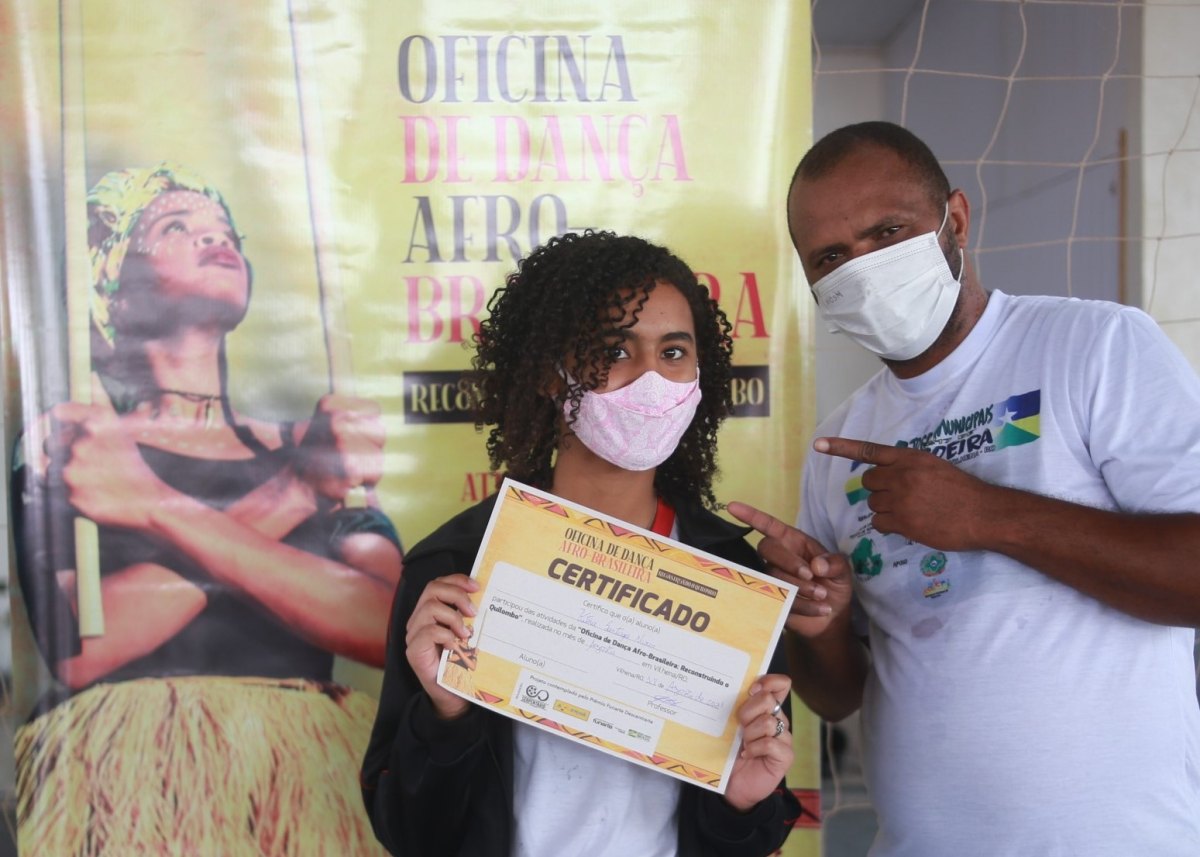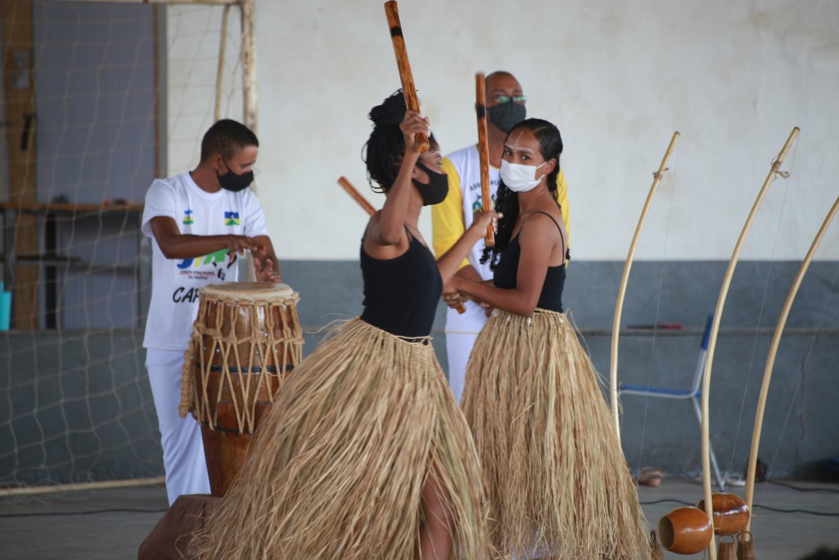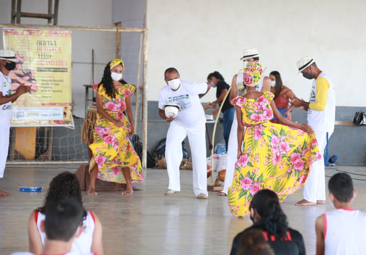 Os participantes tiveram aulas de dança de maculelê, samba de roda, capoeira e roda de conversa sobre a valorização da cultura local.