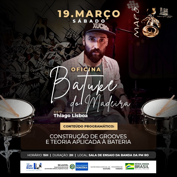 A Madeira Popular Orquestra (Mapo) está com as inscrições abertas para a Oficina Batuke do Madeira a ser ministrada gratuitamente pelo baterista Thiago Lisboa no dia 19 deste mês. As vagas são limitadas por conta das restrições sanitárias. As inscrições encerram na sexta-feira,18.
