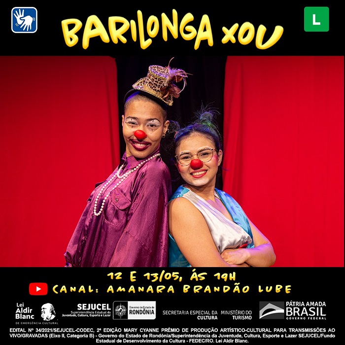 As palhaças Milonga e Barina fazem a alegria geral com o espetáculo “Barilonga Xou”. O espetáculo, que será transmitido virtualmente nos dias 12 e 13/05, promete agradar a todas as idades.