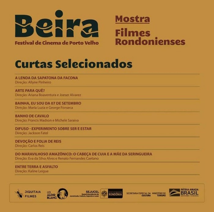 O Beira Festival de Cinema de Porto Velho exibirá os 46 filmes que integram as seis mostras temáticas desta edição entre os dias 18 e 23 de maio, de forma gratuita e online pelo sitewww.beirafestivaldecinema.com.