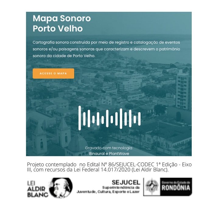 O Mapa Sonoro de Porto Velho é uma cartografia sonora construída por meio de registro e catalogação de eventos sonoros e/ou paisagens sonoras que caracterizam e descrevem o patrimônio sonoro da cidade de Porto Velho.