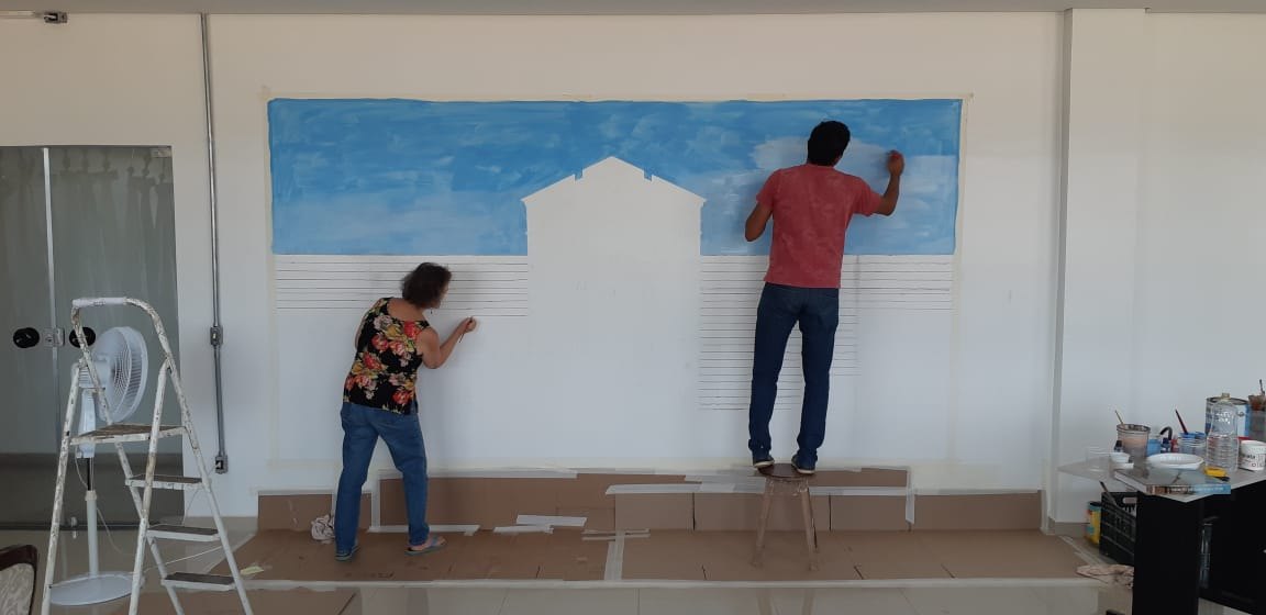 O trabalho foi realizado pelos artistas visuais Angella Schilling e Bruno Sousa
