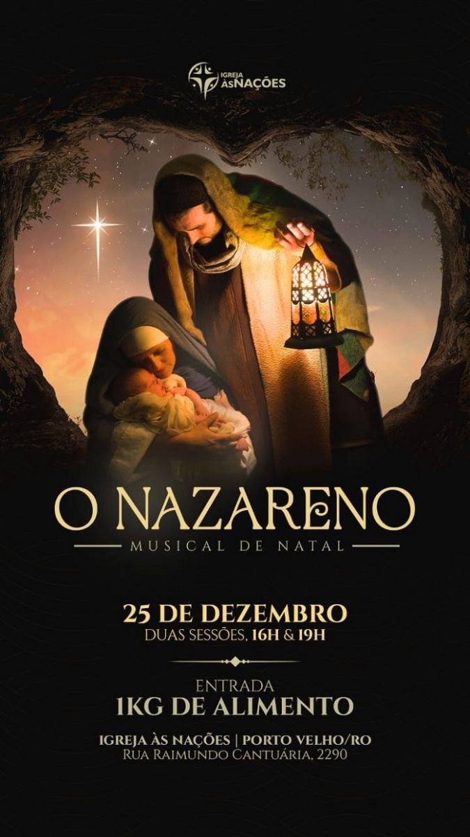 No próximo domingo,25, tem duas sessões do Musical de Natal - O Nazareno, às 16h e às 19h, na Igreja Bastista As Nações, na Raimundo Cantuária, 2290, Bairro Mato Grosso. A entrada é 1kg de alimento não perecível. O espetáculo é composto de dança, teatro e música, e contará com 50 integrantes.
