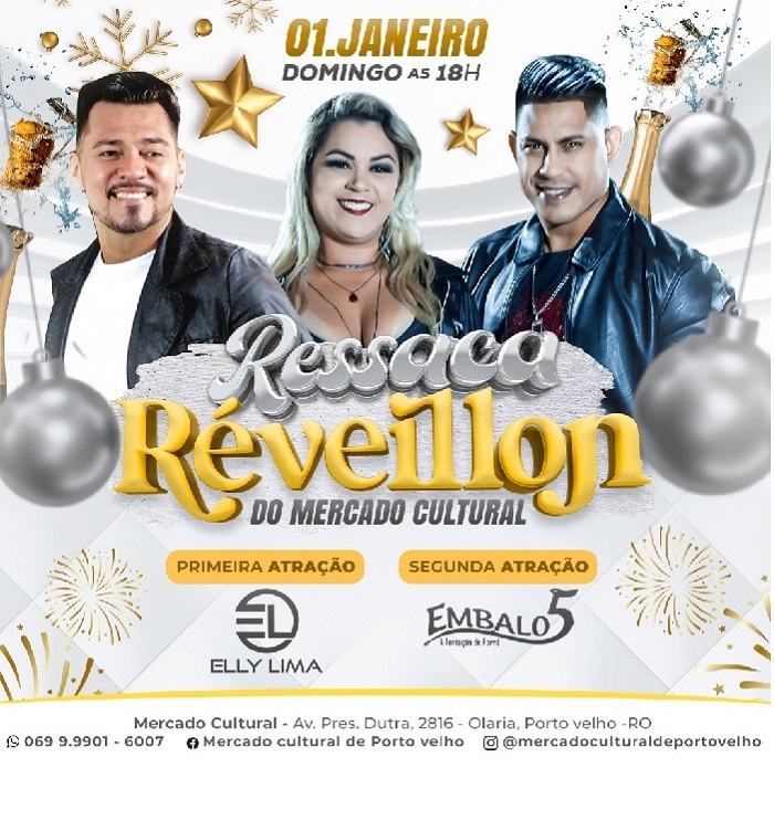 Já no domingo, as portas do Mercado Cultural vai abrir as 17h, e os shows da "Ressaca", será a partir das 18h, com apresentação de Elly Lima e banda, na sequência, da banda Embalo 5.