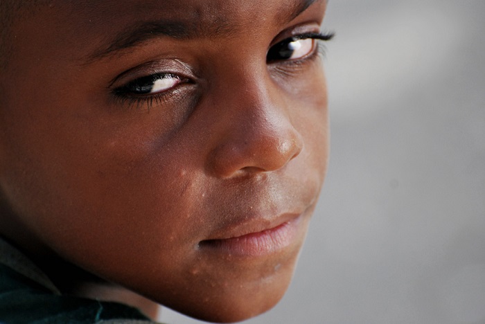 Imagem do filme Balú, a qual mostra um menino negro. A fotografia foco o rosto da criança.