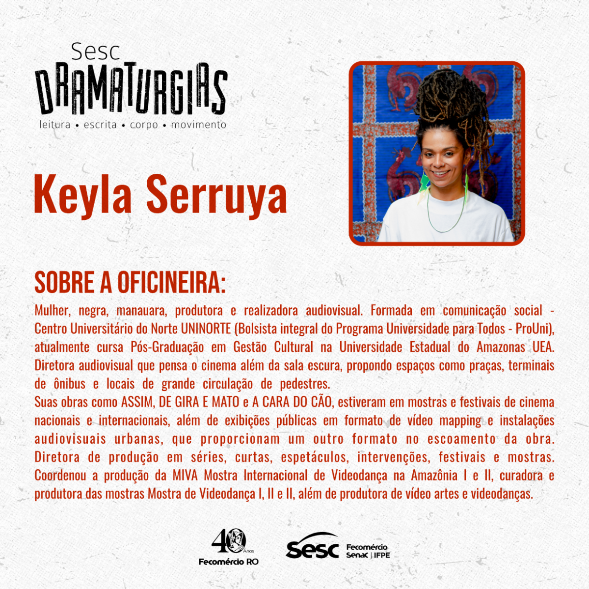 Realização: Realização: Sistema Fecomércio RO/Sesc/Senac, por meio do Serviço Social do Comércio – SESC RO