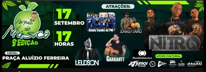Apoio Cultural: Funcultura l- Semusb - Badran Publicidade - Júnior Versatil - Semdestur - 93,3 Rondônia Fm - Portal Rondoniaovivo