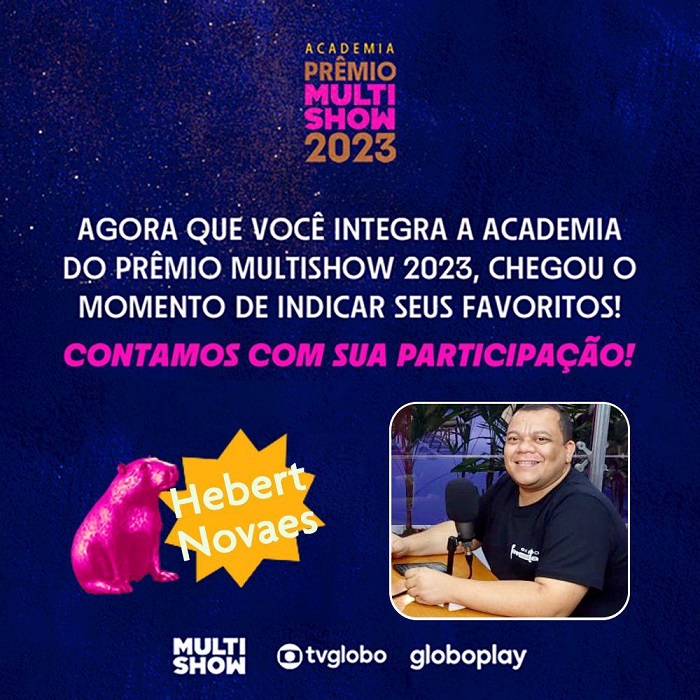 Com o tema “A Música Mexe com o Brasil", o Prêmio Multishow acontece no dia 07 de novembro e o rondoniense Hebert Novaes foi convidado para fazer parte do júri especializado. Este ano o Multishow completa 30 anos.