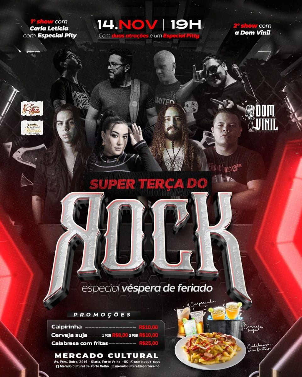 A véspera do feriado da proclamção da República será marcado por rock no Mercado Cultural de Porto Velho, localizado no Centro da capital. A participação do público é gratuita. As atrações musicais começam partir das 19 horas.Sem cobrança de entrada, couvert artístico e nem taxa de serviço.