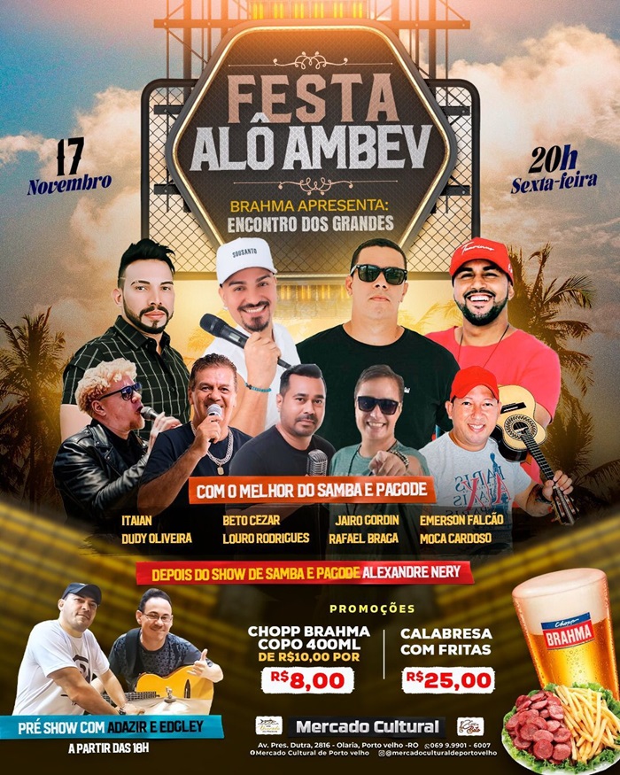 "Vai ter MPB, pop rock, pagode, samba, sertanejo, forró, entre outros estilos para celebrar a nova parceria dos permissionários do Mercado Cultural, e está confirmado para esta sexta-feira, dia 17, com mais de 11 atrações no palco do Mercado Cultural de Pvh", informou o empresário Sinezio Tapajós, permissionário do box Dourado do Madeira.