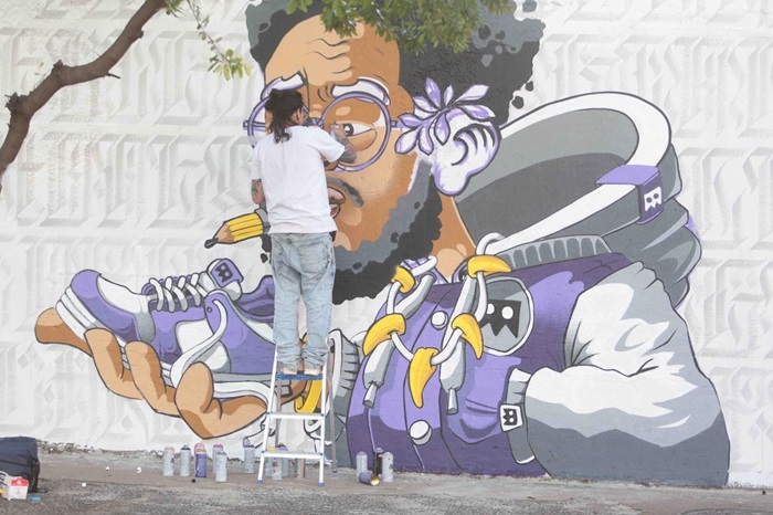 “Daí em diante, foram constantes as participações em festivais, murais e mutirões de graffiti e outros eventos, que são muito importantes para os artistas se aprimorarem, experimentarem e entregarem novos trabalhos, propostas e pesquisas, mas também para rever amigos, trocar ideias, desenvolver projetos, fomento artístico e network”, diz.