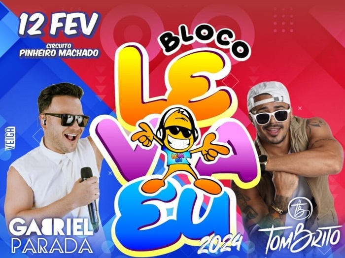 O bloco vai desfilar no circuito Pinheiro, que perfaz o corredor de carnaval pelas avenidas Pinheiro Machado e Carlos Gomes. “Nós vamos mostrar o carnaval envolvente do Leva Eu na região central. Esse ano estamos inovando, dando uma nova roupagem e formato para esse bloco maravilhoso e tão querido pelos foliões”, comento Wellinton Castelo, vice-presidente do bloco.