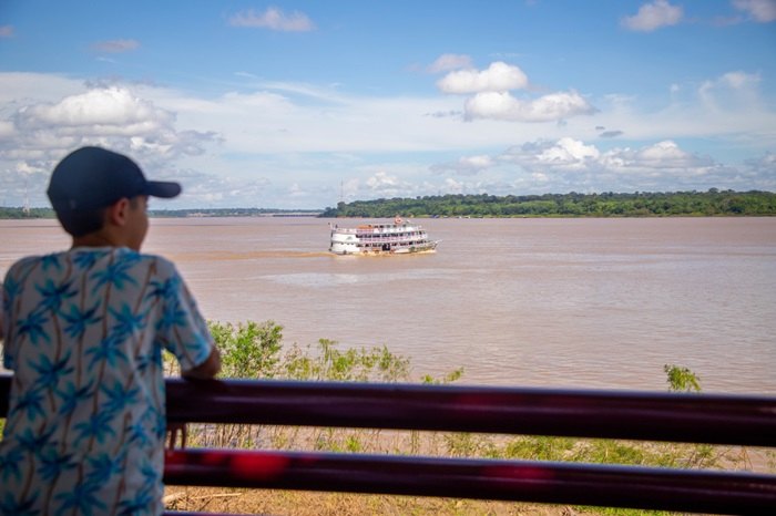 O deck com vista para o rio Madeira dá acesso ao espetáculo natural do local