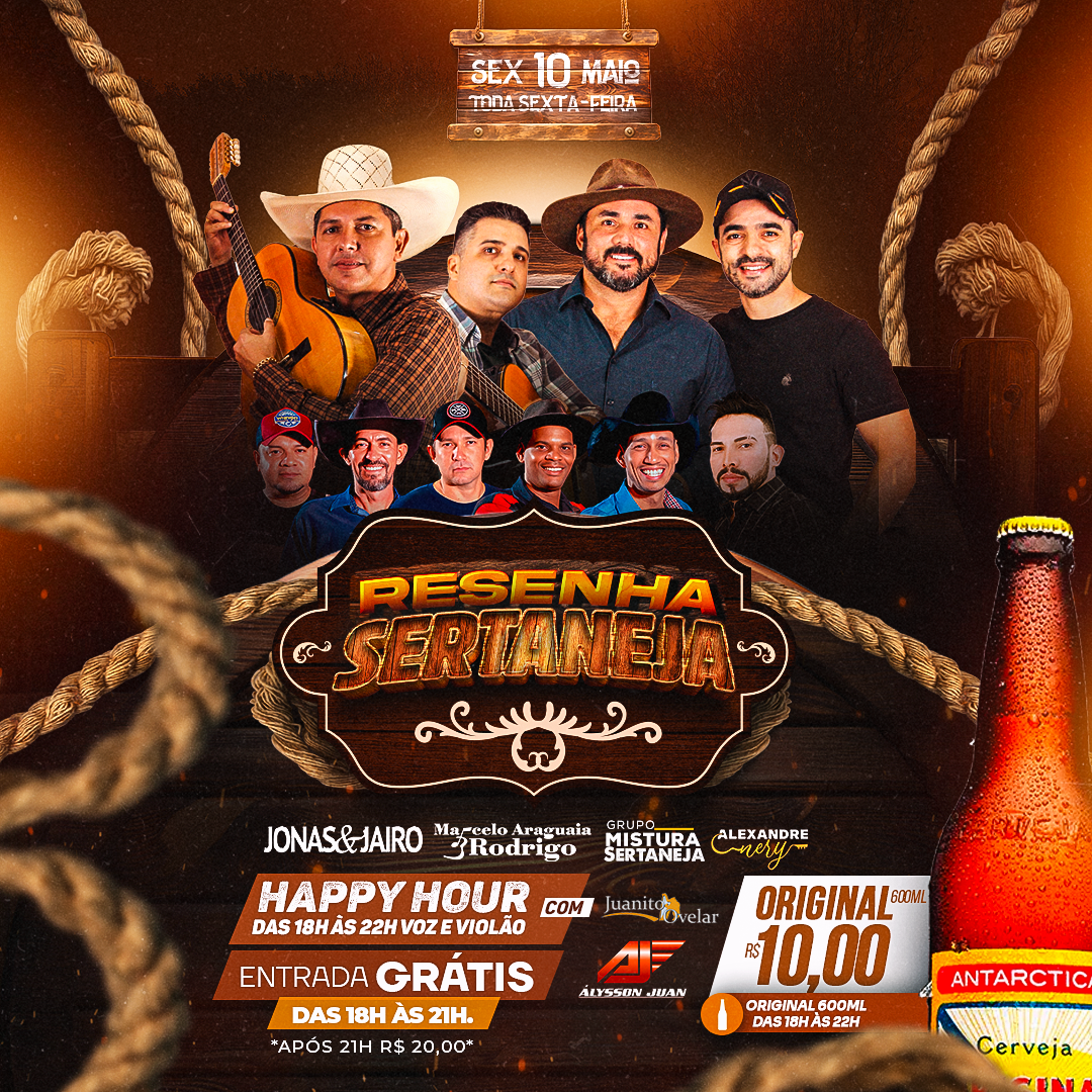 Nesta sexta-feira, dia 10, o evento musical 'Resenha Sertaneja', vai ter cinco atrações e promoções da cerveja Original 600 ml e petiscos para os amantes de uma boa cerveja gelada e de levantar a "poeira do chão" da nova casa de shows, O Monarka.