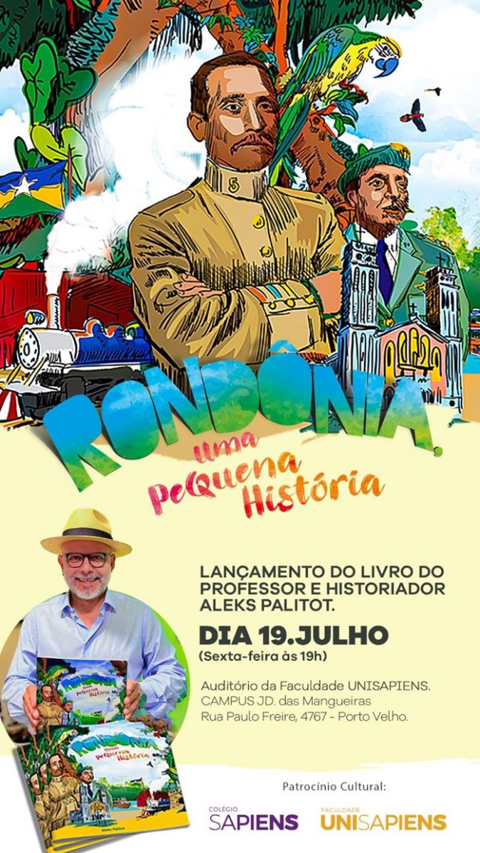 O evento de lançamento da obra intitulada “Rondônia uma Pequena História” será no auditório da Faculdade Unisapiens. A obra, voltada para o público infantil, levará os pequenos leitores a uma viagem pelas belezas e peculiaridades de Rondônia.