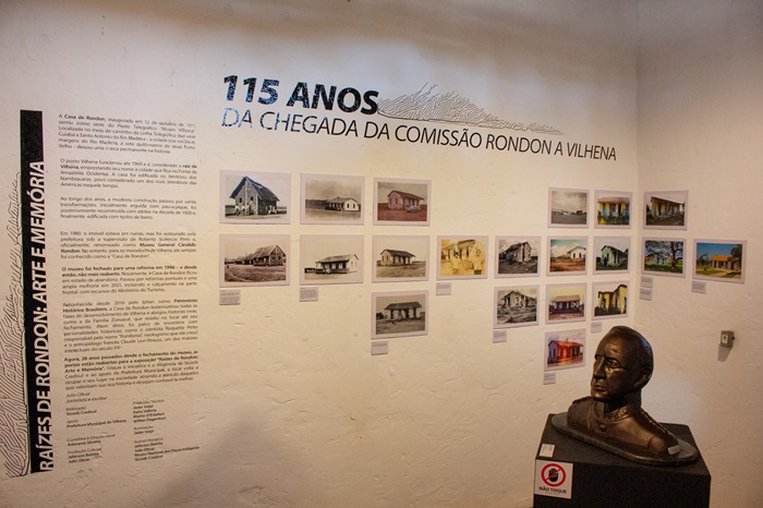 A exposição 'Raízes de Rondon, Arte e Memória' oferece uma viagem no tempo, com fotografias e objetos históricos que mostram a passagem da Comissão Rondon, cuja chegada a Vilhena completou 115 anos no último dia 29 de junho, além da Expedição Científica Rondon-Roosevelt, que este ano completa 110 anos, e a construção do Posto Telegráfico, eventos importantes para o surgimento de Vilhena (RO).