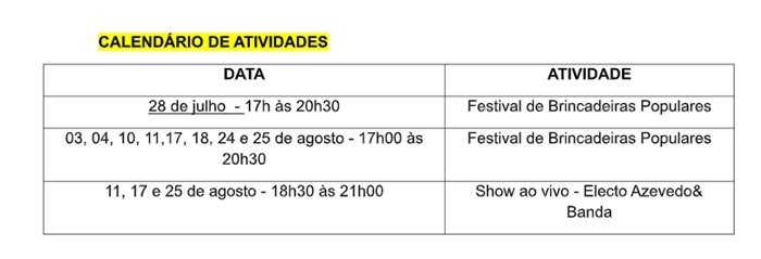 A atividade recreativa acontecerá ainda durante o mês de agosto.