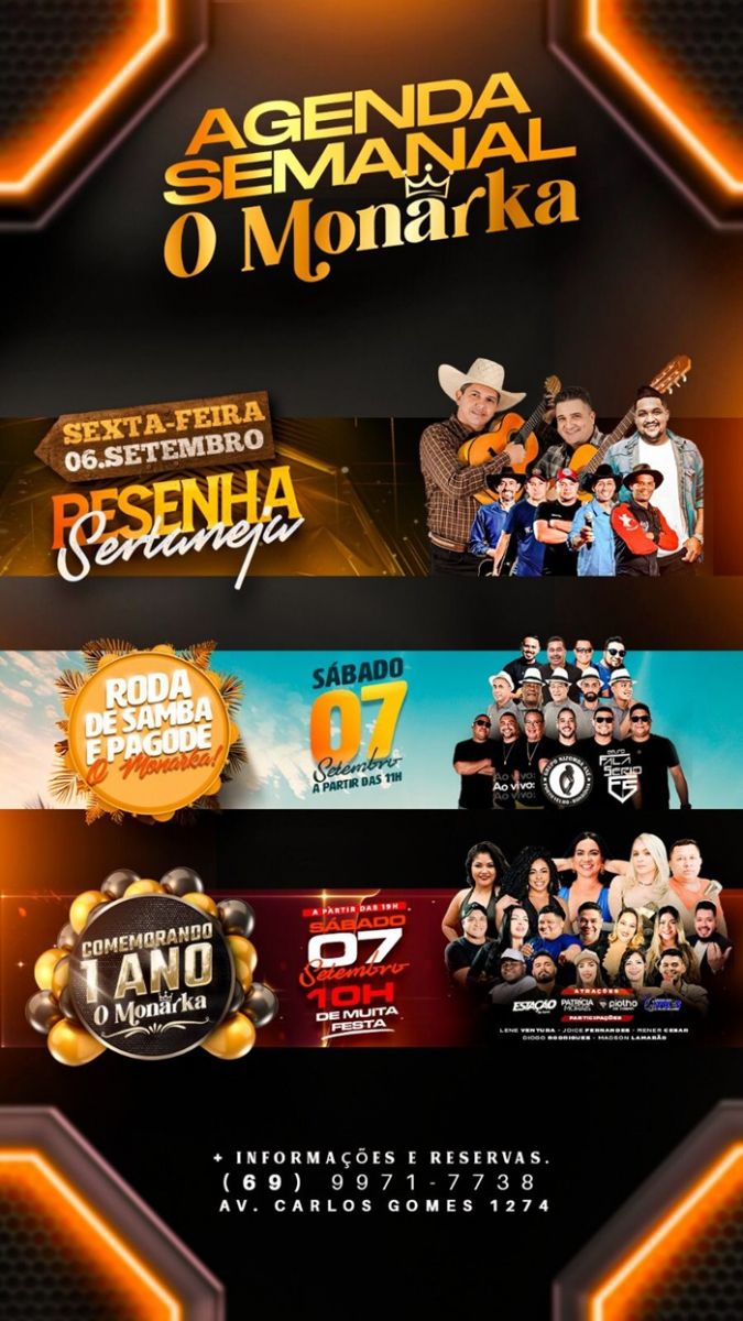 "Você e sua família são os meus convidados para festejar comigo esse momento especial para mim e minha família", disse o empresário Sinésio Tapajós, se referindo aos dois eventos que vão acontecer neste sábado, dia 07, feriado nacional, em comemoração de um ano de atividades da casa de show, O Monarka, uma referência de entretenimento, lazer e gastronomia de alta qualidade da cidade de Porto Velho.