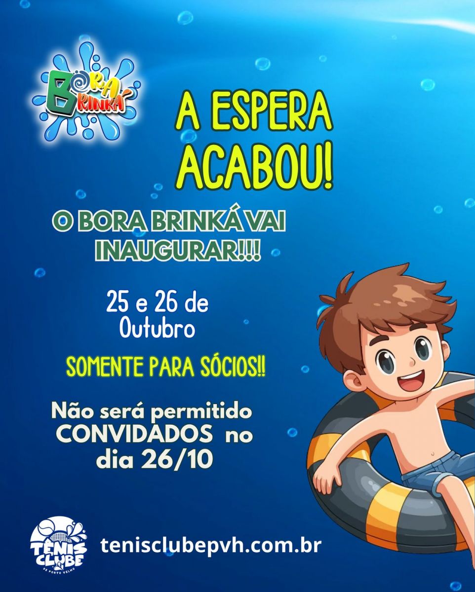 O Tênis Clube de Porto Velho está prestes a viver um momento histórico: nos dias 25 e 26 de outubro, será inaugurada a mais nova atração do clube o Bora Brinká, o maior toboágua de Porto Velho, com 12 metros de altura e muita diversão garantida para toda a família!
