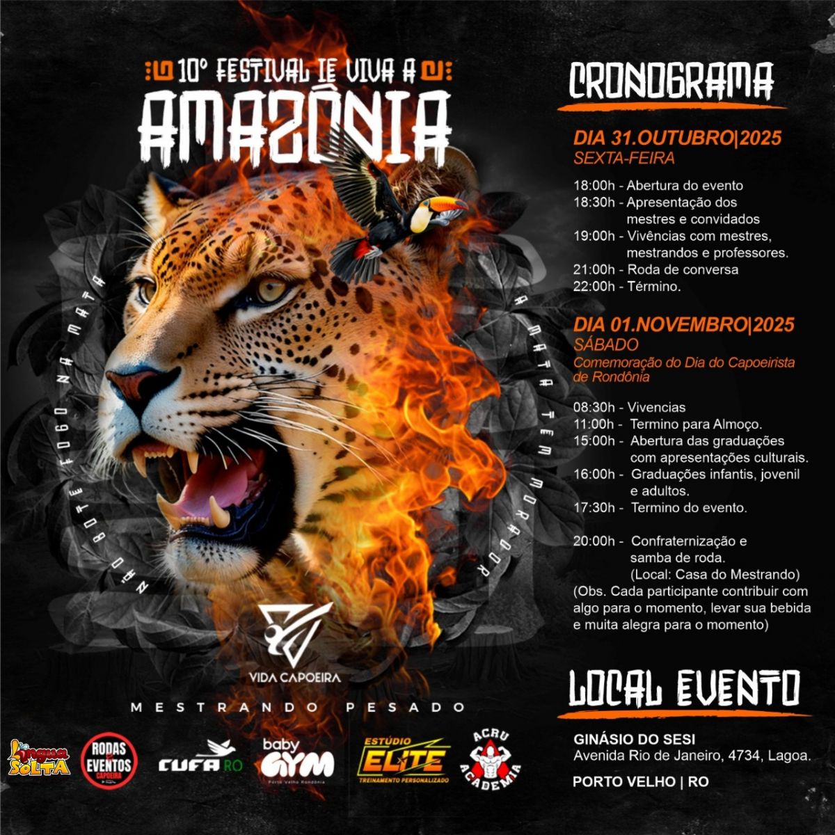 Além da comemoração do aniversário do festival, a edição deste ano celebra também o Dia do Capoeirista do Estado de Rondônia, lembrado em 1º de novembro.
