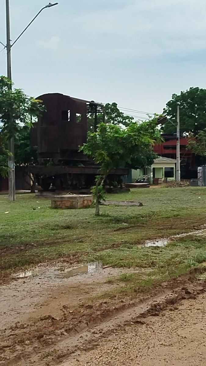 Durante recente viagem de vistoria realizada pela Associação dos Ferroviários da Estrada de Ferro Madeira-Mamoré, o presidente da entidade, George Telles, registrou o que ainda resiste do acervo histórico local. As imagens e relatos revelam um cenário de abandono, mas também de resistência simbólica: mesmo em condições precárias de conservação, uma antiga locomotiva segue exposta em uma praça às margens da BR-364. O equipamento é uma das poucas lembranças visíveis do período áureo da borracha, quando a ferrovia teve papel fundamental no escoamento da produção e na ocupação da região.