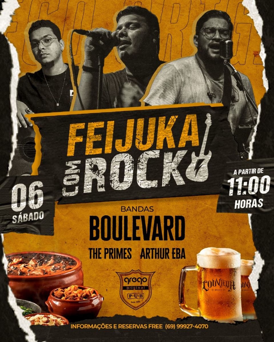 Além da feijoada, o prato principal do dia, tem outras opções no cardápio da casa de rock, entre eles, pratos executivos de carne de sol, filé, picanha e peixes, dourado e tambaqui sem espinha, que você pode tanto degustar no Grego quanto na sua casa, via delivery 6999206-1573.