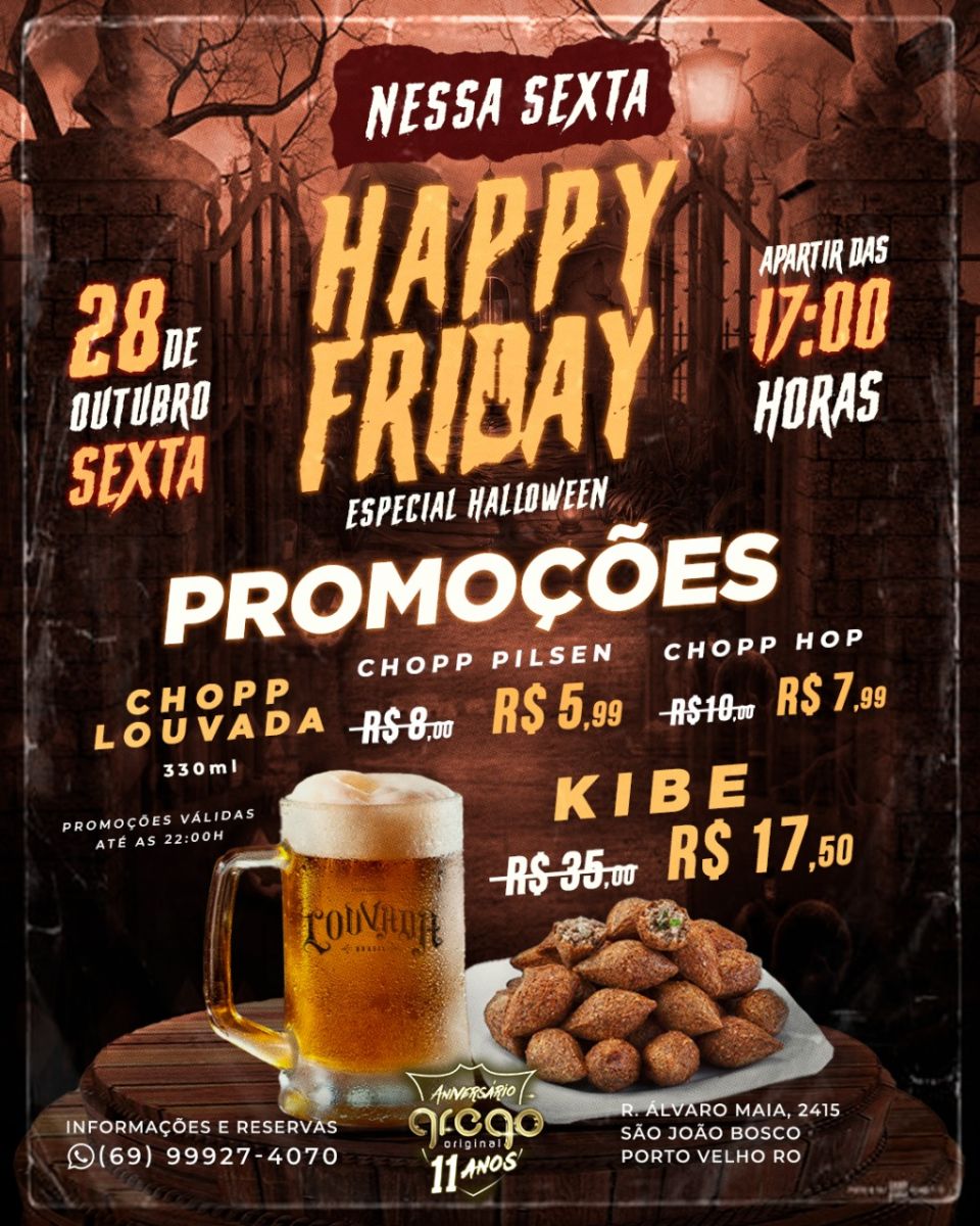 O seu "sextou" de todas às sextas é no Grego! Onde rola promoções, das 17h às 22h, de chopp e petiscos e muito 'rock and rock'!