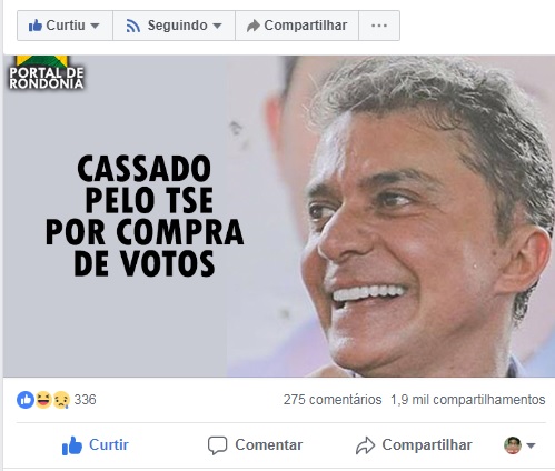 A Justiça analisou que as informações constantes da página de facebook “Portal de Rondônia” dizem respeito a fatos verídicos, de conhecimento público e admitidos pelo próprio candidato, não havendo, portanto, a alegada ofensa à honra.