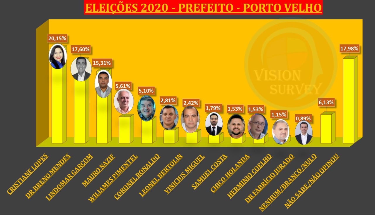 A pesquisa foi divulgada hoje pelo Instituto Vision Survey e é do tipo estimulada, na qual o eleitor escolhe o nome de um pré-candidato previamente escolhido pelos pesquisadores. Na lista, aparece ainda outros pré-candidatos bem aliviados como Williames Pimentel, o coronel Ronaldo Flores, e o ex-secretário Leonel Bertolin.