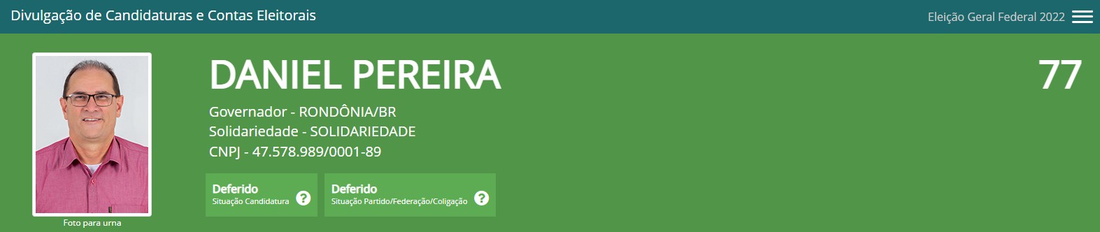 Daniel Pereira não aparece nesta lista, pois não concorreu a nenhum cargo naquela eleição, já que era governador de Rondônia, onde assumiu após a renúncia de Confúcio Moura (MDB) para concorrer ao Senado Federal.