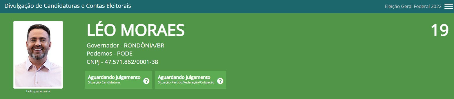 - Léo Moraes (Podemos) tem bens avaliados em R$ 1.983.172,03, dividido entre imóveis, participações em empresas e aplicações: terreno em Porto Velho (R$ 372.000,00), investimentos em ações (R$ 40.000,00), crédito decorrente de empréstimo (R$ 736.000,00), valor em Conta corrente/conta poupança (R$ 172.000,00).