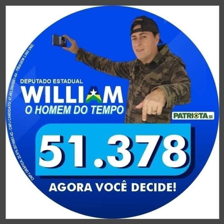 O repórter William Homem do Tempo, candidato a deputado estadual pelo Patriota, segue em campanha para conseguir uma cadeira na Assembleia Legislativa de Rondônia.