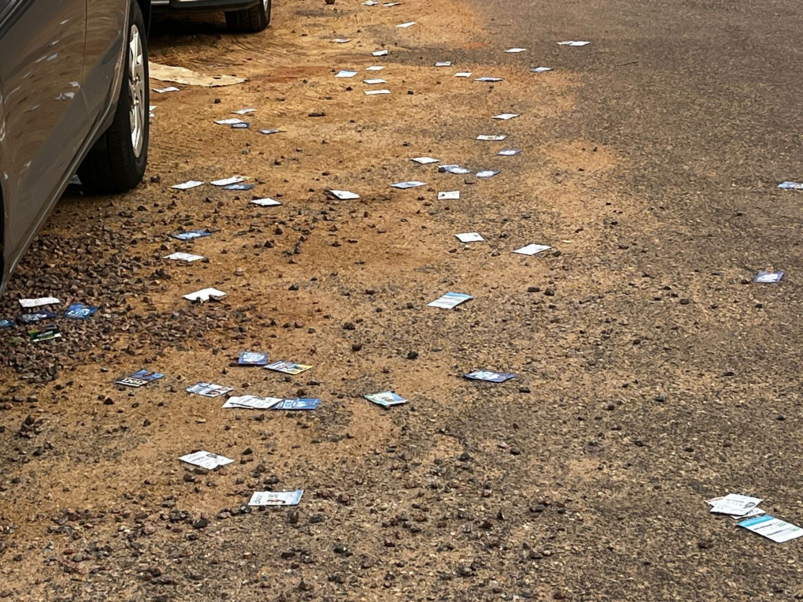 No entorno da Escola Estadual de Ensino Fundamental e Médio Prof. Eduardo Lima e Silva, a reportagem avistou centenas de santinhos nas ruas. Já as proximidades da Escola Municipal de Ensino Infantil Canto do Uirapuru estão menos poluídas, com papéis em menor quantidade.