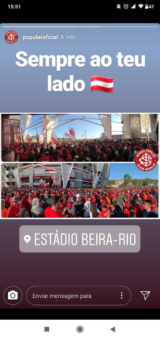 Internacional e Flamengo disputam hoje a noite uma das vagas para a semifinal da Taça Libertadores da América, em Porto Alegre. Chamou atenção do Brasil ontem, 27, a mobilização da torcida Colorada, durante treino do Inter, confiante em um resultado positivo para os gaúchos. O Flamengo tem vantagem de perder por um gol de diferença para se classificar. Semana passada no Maracanã, os cariocas venceram o Colorado por 2 a 0.