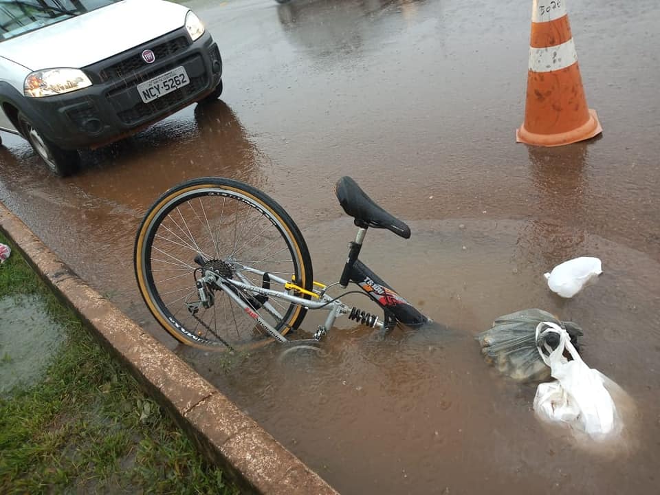 Na rua da Beira, próximo a Jatuarana, quase em frente a Rovema, ciclista foi vítima de uma das centenas de buracos espalhados pela cidade. O volume de água escondeu a cova e o cidadão caiu na pista sofrendo ferimentos no rosto.