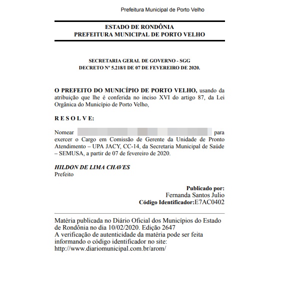 Desde o início de fevereiro a UPA de Jaci Paraná, distrito localizado a 80 km de Porto Velho, tem um cidadão nomeado para o cargo de diretor. O agraciado com tamanha responsabilidade terá proventos da ordem de R$ 3.666,00. A questão é que a dita Unidade de Pronto Atendimento ainda não foi inaugurado.