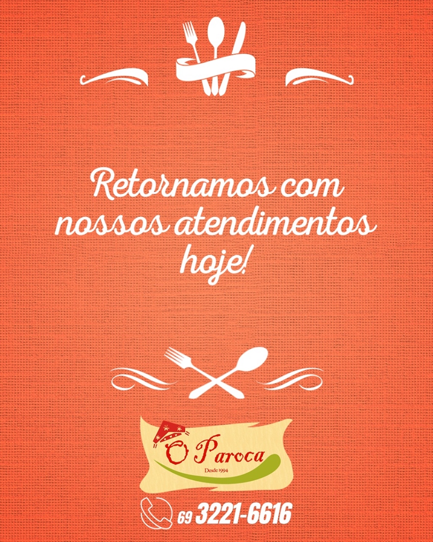 José Paroka avisa que o tradicional restaurante da família está de volta às atividades hoje após um período de reformas. No cardápio, opções de carne e peixes variados que são marca registrada do Paroka. José avisa também que o atendimento será diferenciado, observando todas as regras importantes de saúde em decorrência da pandemia de coronavírus. Restaurante Paroka está localizado na rua João Goulart, 2593, bairro São Cristóvão. O telefone para reservas e informações é o 3221-6616.