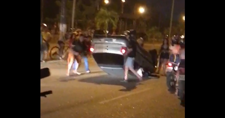 Print do vídeo gravado na noite de ontem (2) no acidente com capotamento no Espaço Alternativo, em Porto Velho