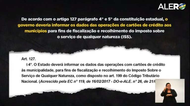 Com imagens em um telão, Eyder Brasil pontuou os prejuízos, somente em 2019, para os municípios de Porto Velho, Ji Paraná, Cacoal e Vilhena. No total, essas cidades deixaram de arrecadar mais de 50 milhões de reais porque o governo não mandou os arquivos de cartões.