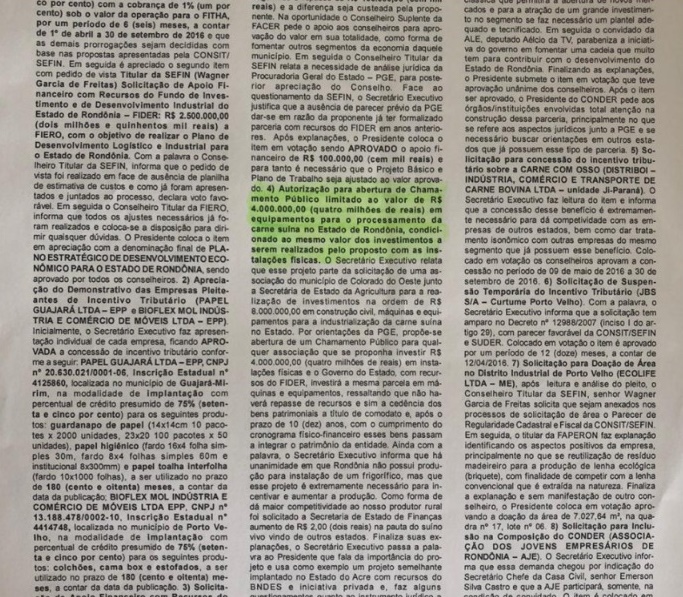 Em agosto de 2016, o Governo do Estado publicou no Diário Oficial a liberação de recursos para a implantação de um frigorífico de suínos em Rondônia. Seriam 9 milhões em investimentos. 50% custeados pelo governo e o restante pelos produtores.