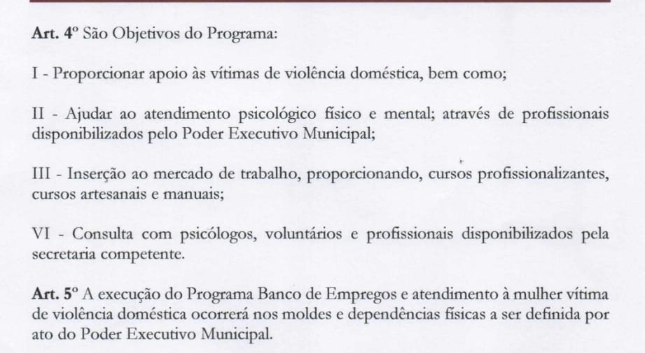 O projeto da vereadora institui na cidade um banco de empregos para mulheres que sofrem violência e oferece suporte psicológico e outros atendimentos para as vítimas de agressão. No entanto, a iniciativa não teve a quantidade de votos necessários para ser aprovado.