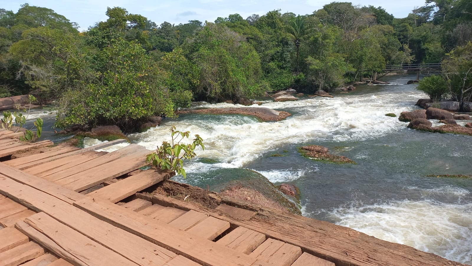 O que já é perigoso fica ainda mais arriscado no período de cheia. A água costuma subir até muito próximo da ponte o que obrigatoriamente significa que é necessário uma estrutura eficaz para dar segurança a quem passa pelo local.